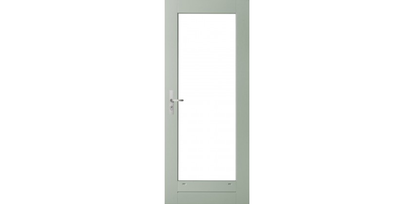 De deur wordt wit voorgelakt. Prijs is exclusief: glas, beslag en hang- en sluitwerk.